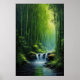 Treten Sie ein in eine Welt lebendiger Bezauberung inmitten eines smaragdgrünen Bambuswaldes. Der üppige Baumkronendach, ein smaragdfarbener Wandteppich, filtert das Sonnenlicht in abgeflachte Muster auf dem Waldboden. Mitten in dieser grünen Symphonie stürzt eine kleine Kaskade sanft ab, ihre silbernen Fäden fügen der Szene eine Touch der Magie hinzu. In diesem Bereich herrscht die Natur, wo die Schönheit des Bambus und des kaskadenförmigen Wassers in atemberaubender Ruhe verschmelzen.