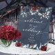 Ein marineblau-bordeauxfarbenes Blumenschild "Welcome To Our Wedding", ein selbststehendes Schild mit marineblau lackiertem marineblauen Hintergrund mit marineblauen und bordeauxfarbenen Pfannkuchen und staubblauen Eukalyptusgrün. Eine Kalligraphie aus dem Swash empfängt Ihre Gäste zu Ihrer ganz besonderen Veranstaltung.