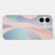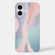 This is a captivating abstract artwork characterized by its soft, flowing lines and harmonious blend of pastel colors. The composition features organic, undulating shapes that gracefully interlock and overlap, creating a sense of gentle movement and fluidity. The primary colors include delicate blush pinks, serene sky blues, and soothing lavender purples, with subtle hints of mint green and cream. Fine, delicate white lines weave across and within some of the larger colored sections, adding intricate detail and visual texture without disrupting the overall minimalist aesthetic. The overall impression is one of calm, elegance, and modern artistry, making it an ideal design for an iPhone case.