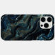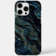 A captivating abstract artwork featuring flowing textures in deep blues, blacks, and metallic tones. The rich, layered design evokes the movement of dark waters or molten minerals, offering a dramatic and mysterious visual experience.