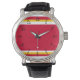 Mit dieser roten, gelben und weißen Uhr machen Sie ein Modestatement.