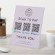Cash App Venmo Paypal QR Code Scan to Pay Logo Lila Boosten Sie die kontaktlosen Zahlungsoptionen Ihres Unternehmens mit diesem beruflichen Cash App Venmo QR Code Scan zur Bezahlung Logo Podestal. Dieses schlichte und stilvolle Schild eignet sich perfekt für die Anzeige an Ihrem Kasse-Schalter, am Restauranttisch oder überall dort, wo die Kunden einfach scannen und bezahlen können. Passen Sie das Design mit Ihrem Firmenlogo an und personalisieren Sie es mit einer Nachricht.