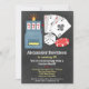 Ein lustiges Casino-Thema Geburtstagseinladung mit einem Spielautomaten, Spielkarten, Würfeln und einem Poker-Chip. Ideal für Spielabende oder Casinoausflüge.
