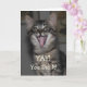 "Jay! Sie haben es geschafft!" - "Yipee!" - "So intelligent!" - "Großer Job!" - "WooHoo!" - "Fantastisch" und "Gratulation Graduate" sind alle Teil der Nachricht auf dieser Abschluss-Karte. Auf der Vorderseite dieser Karte befindet sich unser graues gestreiftes Kätzchen, Kaspisch, inmitten eines großen Kätzchen-Garns. Ihr Mund ist in einem Lächeln aufgedreht und ihre lange rosa Zunge ist komplett aus ihrem zahnlosen Mund ausgestreckt, sodass sie für Ihren glücklichen Absolvent sehr aufgeregt aussieht.