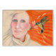Schöner, auffallender Cassandra erhält einen Besuch von ihrem Lieblingskolibri. Eine auffallende Anmerkungskarte für irgendeine Gelegenheit. Ursprüngliche Pastellmalerei von Laura J. Holman ©2011.