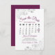 Diese Save the Date Karte zeichnet sich durch ein wunderschönes Design aus, mit Cassis lila oder Magenta und grauem Schriftzeichen auf weißem Hintergrund, und frilly Imitate verzieren silbergraue Falten in den Ecken. Es gibt einen individuell anpassbaren Kalender, in dem Sie ein Herz um Ihren Hochzeitstag legen können. Es gibt Platz für den Namen des Paares, den Ort der Hochzeit und die Website. Elegante und schicke Art, Ihre Freunde und Familie lassen wissen, um für Ihren besonderen Tag Save the Date.