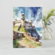 Diese Postkarte zeigt ein Aquarellbild von Castillo San Felipe del Morro in Puerto Rico.