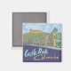 Handgezeichnetes Stadtbild der Stadt Castle Rock Colorado. Dieser schöne Magnet wird gut in Ihrer Zuhause oder Ihrem Büro aussehen. Reisen zum Castle Rock Colorado? Dieser Magnet ist ein großartiges Geschenk für sich selbst oder einen geliebten.