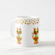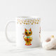 Elegante und schöne Tasse mit Katzenund Golddots Konfetti Dekoration auf weißem Hintergrund. Das goldene Design ist nur ein Bild. Genießen Sie diese luxuriöse Tasse.