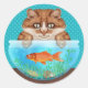 Cat and Goldfish Bowl Funny Hungernd Grinning Kitt Runder Aufkleber
