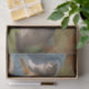 Auf dem Tissue-Blatt befinden sich Kunstwerke des deutschen Malers Wilhelm Schwar (1860-1943) mit dem Titel "Die Stolze Katzenmutter" (Proud Mother Cat). Es verfügt über eine graue und weiße Mutterkatze und drei Kätzchen mit verschiedenen Mänteln, einschließlich Ingwer und Calico.