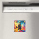 Dieser Magnet hat eine künstlerische Katze darauf.