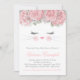 Katzenduscheinladung mit einem zauberhaften Kätzchengesicht auf einem rosa und weißen Streifen Hintergrund. Diese kleinen Babyduschen sind einfach auf Ihre Veranstaltung zugeschnitten, indem Sie einfach Ihre Details hinzufügen.