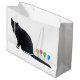 Eine schwarze Katze mit Ballons auf dem Schwanz. Eine lustige Geburtstagsgeschenk-Tasche.