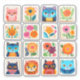 Kleine, farbenfrohe Tiere und Blume Quadrate. Katzen, Blume, Löwe, Eule.