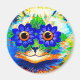 Magnet mit Louis Wains Tiergemälde Cat Blume Eyes (1860-1939). Eine Regenbogenkatze grindet weithin. Blaue Blumen bedecken seine Augen. Ein wunderbares Geschenk für Katzenliebhaber und englische Kunst.