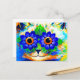Postkarte mit Louis Wains Tiergemälde Cat Blume Eyes (1860-1939). Eine Regenbogenkatze grindet weithin. Blaue Blumen bedecken seine Augen. Ein wunderbares Geschenk für Katzenliebhaber und englische Kunst.