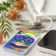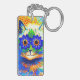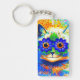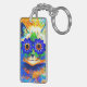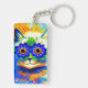 Schlüsselanhänger mit Louis Wains Tiermalerei Cat Blume Eyes (1860-1939). Eine Regenbogenkatze grindet weithin. Blaue Blumen bedecken seine Augen. Ein wunderbares Geschenk für Katzenliebhaber und englische Kunst.