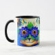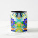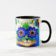 Tasse mit Louis Wains Tiergemälde Cat Blume Eyes (1860-1939). Eine Regenbogenkatze grindet weithin. Blaue Blumen bedecken seine Augen. Ein wunderbares Geschenk für Katzenliebhaber und englische Kunst.