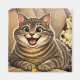 A magnet featuring a photo of a cat caricature.