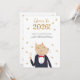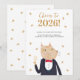Welcome in the New Year with a playful twist! This fun and whimsical design features an suave and sophisticated anthropomorphic golden cat dressed in a tuxedo and bow tie, holding a glass of celebratory Champagne against a gold, black, and white palette. Personalize all text to include your greeting and name(s). Perfect for animal lovers, cat fans, and anyone with a sense of humor. Original art by Nic Squirrell.