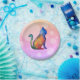 Kosmische Aquarellkatze. Rosa Punkte Design. Spaß und originelles Papier Blechdesign für Party.