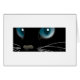 Schwarze Katzenkunst mit nah-oben blauen Augen, Nasenspitze und nur Flüstern. Digitale grafische Darstellung.