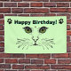 Cat Face Whiskers Green Eyes Paw Prints Birthday Banner