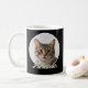Genießen Sie Ihre Lieblingsgetränke mit einer puren Touch! Diese elegante schwarze Tasse zeigt das Foto der Katze in einem runden Rahmen auf beiden Seiten der Tasse. Fügen Sie eine individuelle Touch mit dem Namen Ihrer Katze hinzu, die in cooler Schriftzeichen-Typografie angezeigt wird. Eine stilvolle Tasse, die sich ideal für Katzenliebhaber eignet.