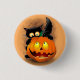 Cat Fun Halloween Charakter beißt einen Kürbis Button