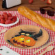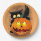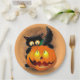 Cat Fun Halloween Charakter beißt einen Kürbis Pappteller