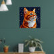Cat Gazing bei einem Sternenkosmischen Nachthimmel Poster