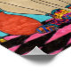 Diese königliche Katzengöttin sitzt auf einem rosa und schwarz gekerbten Boden vor einem Aquahintergrund, umgeben von exotischen fächerförmigen Pflanze in Terrakottafasern. Die farbenfrohen und sehr detaillierten Markierungen an Beinen, Brust, Stirn und Schwanz besticht durch ihre königliche Linie. Die ganze Szene ist von einer sehr detaillierten Grenze umgeben, die den Mustern auf ihrem Fell entspricht.
