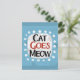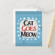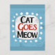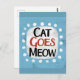 "Cat Goes Meow" ist ein lustiges Textdesign mit weißer Akzent-Form, umgeben von weißen, weißlichen, weißlichen, weißlichen, weißgestrichenen Punkten.