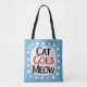 "Cat Goes Meow" ist ein lustiges Textdesign mit weißer Akzent-Form, umgeben von weißen, weißlichen, weißlichen, weißlichen, weißgestrichenen Punkten.