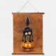 Cat Halloween erschreckter Cartoon auf Kürbiskröte Wandteppich Mit Holzrahmen