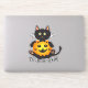 Halloween Katze, die Jack-o'-Lantern hält, gekrümmt wie eine Katze, um Trick oder Leckerbissen zu spielen. Niedliches und humorvolles Halloween-Geschenk für Katzenliebhaber.