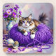 Cat in Purple Yarn and Flowers Getränkeuntersetzer
