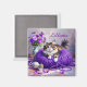 Cat in Purple Yarn and Flowers Personalized Magnet