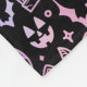 Halloween werfen Bankett mit einem trendigen rosa und lila Muster auf einem schwarzen Hintergrund mit Katzen, Kürbissen, Jack O'Lanterns, Fledermäusen und mehr Design bedruckt auf beiden Seiten.