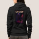 Show off your love for cats, while poking fun at the cat lady label, with this graphic hoodie. The comic-style art is printed on the back of the zip-front sweatshirt. Cat Lady struts in her sassy head to toe catsuit, as she walks her equally confident, leashed black cat. The dimly lit street is illuminated by the crescent moon in this 'nighttime in the city' theme. • Vivid printing is recommended for non-white garments.