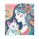 Eine grafische Abbildung einer Katze Lady zusammen mit ihrer Katze. Für Damen, die Katzen und Kätzchen Lieben.