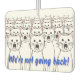 Die "Harris Walz, Cat Ladys, wir gehen nicht zurück!" Air Freshener präsentiert eine auffällige minimalistische Darstellung einer vereinten Gruppe von fast identischen Katzen, jede mit kartoonischen Gesichtern, offenen Mündern und zauberhaften rosa Nasen. Alle Katzen sehen sich solidarisch gegenüber und erklären mutig "Wir gehen nicht zurück!" zur Unterstützung von Kamala Harris und Tim Walz. Der reine weiße Hintergrund hebt das lebendige Design hervor und verbindet spielerische Typografie mit charmanter Illustration im Stil der 50er Jahre, die eine auffällige und merkwürdige Komposition schafft.