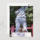 Eine Katze flüchtet am Fuß eines Hüters Löwenhundes (Komainu). Treppen aus Stein, Löwenhunde schützen oft die Eingänge zu Schrecken und Tempeln in Japan.