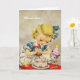 Cat Little Girl Baking Cake Happy Birthday Karte