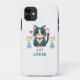 Niedliche Kawaii aquamarine Katze sitzend zwischen zwei Blume Vasen mit einer Herzform auf jeder Seite. Dieses Design ist ideal für Katzenliebhaber.