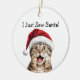 Cat Kitten Kitty Xmas Tree Verschönerung für Katzen Liebhaber Feline Geschenk sammelbar. Dieses Funny Cat Weihnachtsschmuck hat eine Mischous Cat. Dieser Whimsical Kitten kann seinen Augen nicht glauben, wenn er den Weihnachtsmann sieht! Feiern Sie mit diesem Cat Lovers Weihnachtsgeschenk Ihre verrückten und ganz phantastischen Feline Friends! Humorvolle Kitty in einer Weihnachtsmannmütze Feriendekoration für Ihren Weihnachtsbaum. Der Vers sagt, ich habe gerade den Weihnachtsmann gesehen!" Dieses lustige Weihnachtsschmuck ist so Niedlich, dass es mich will, in Song auszubrechen..."Und eine Katze im Weihnachtsbaum, Fa la la la la!"