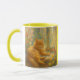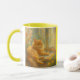 A beautiful image of a cat relaxing in an attractive background is featured on both sides of this stunning coffee mug.