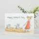 Alles Gute zum Muttertag. Für die größte Katzenjunges-Mama der Welt. Alle Texte können individuell angepasst werden. Ein niedliches kleines Mädchen in einem roten Kleid, das zwei graue Katzen mit blauen Augen in Kisten geht, indem es sie mit einer Kette zieht. Einzigartiger Katzenweg. Sweet Cat Cartoon Illustration gezeichnet von Donna Leger.