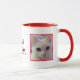 Dieses niedliche, moderne und einzigartige Design besticht durch zwei personalisierte Fotos auf beiden Seiten der Tasse. Das Zitat "Cat Mama" mit einem kleinen handgezeichnet roten Pfoten in Herzform wird im Zentrum der Tasse vorgestellt. Die moderne und trendige Typografie macht das Design lustig, einzigartig und besonders.
